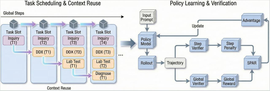 可以简单理解为,在只以结果做唯一结论的强化学习方式上,百川做了新的改良,把诊断拆成四个部分问诊、鉴别诊断、实验室检测和最终诊断,分阶段去做强化学习,每个阶段的结论信息可以带到下一个阶段。针对医疗这类长时间问询过程的任务,处理准确度也有所提升。
